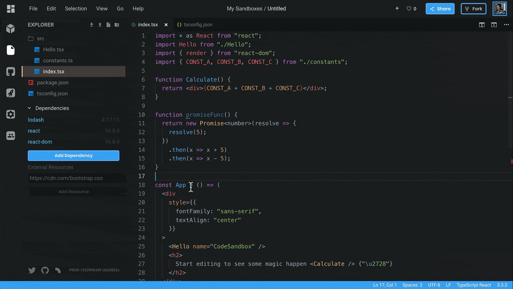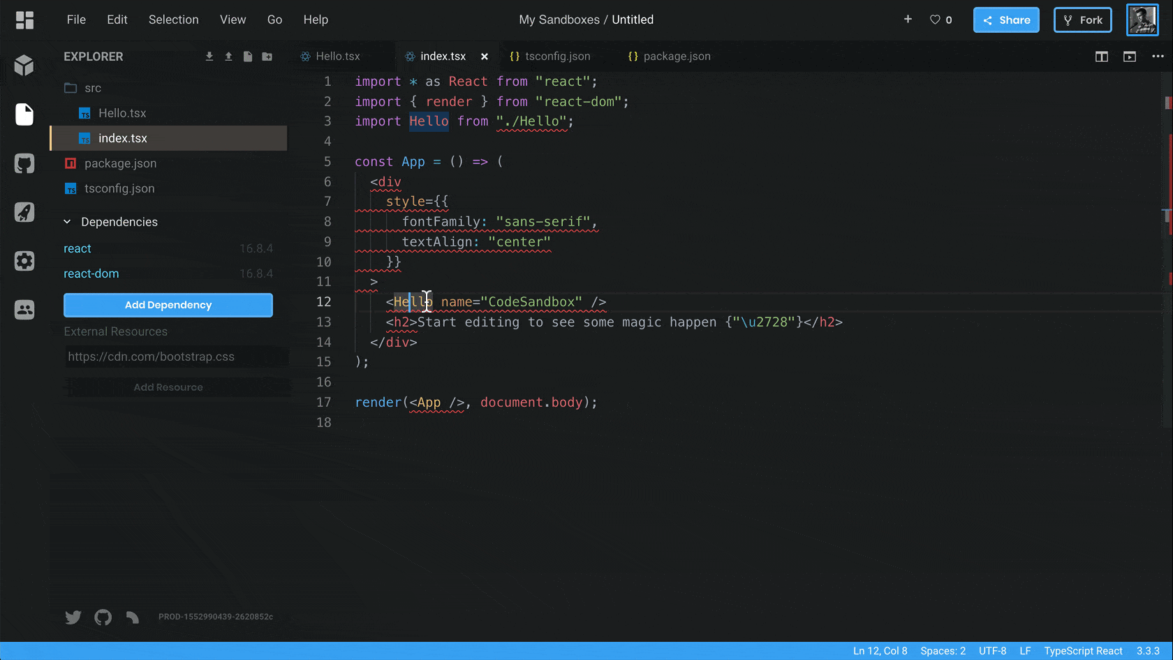 Since October we've been fixing a bunch of bugs and improved the general integration. From now on we'll run VS Code as the only editor in CodeSandbox, and with that, we decided to give the editor a new look! Here's what was added with the new integration: