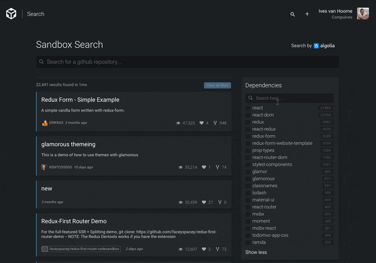 Yes! I'm really excited for this feature. We now have search powered by Algolia. It's insanely fast, I was never able to exceed the 2ms in search time with 22,000 sandboxes. Integration was also much easier than I expected, it took me two days to do the backend and the frontend.